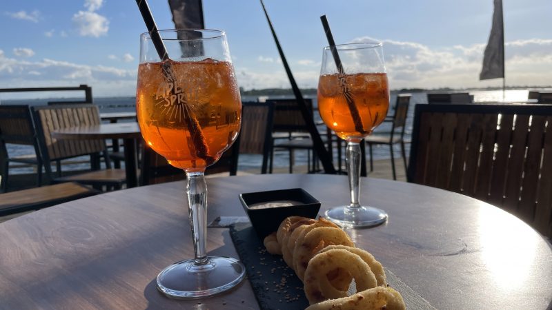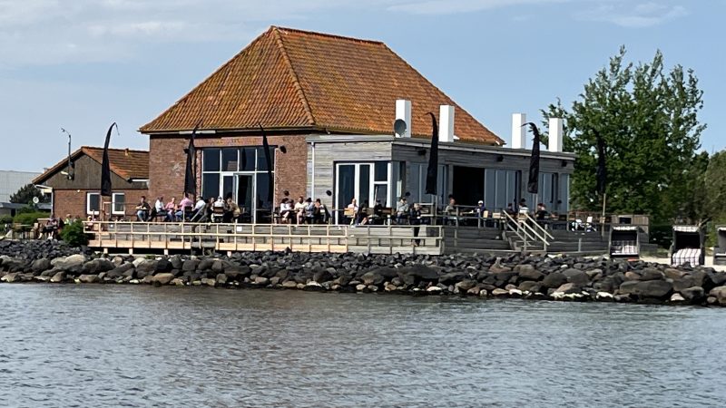 genau so wie abends die Bar an der Einfahrt zum Hafen