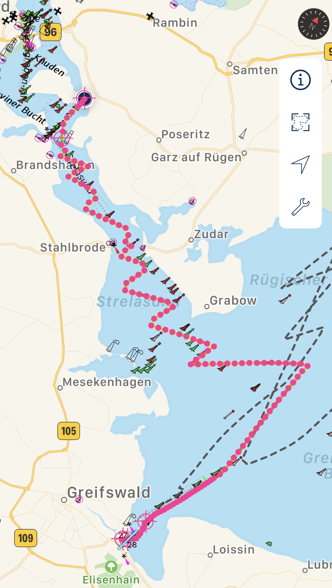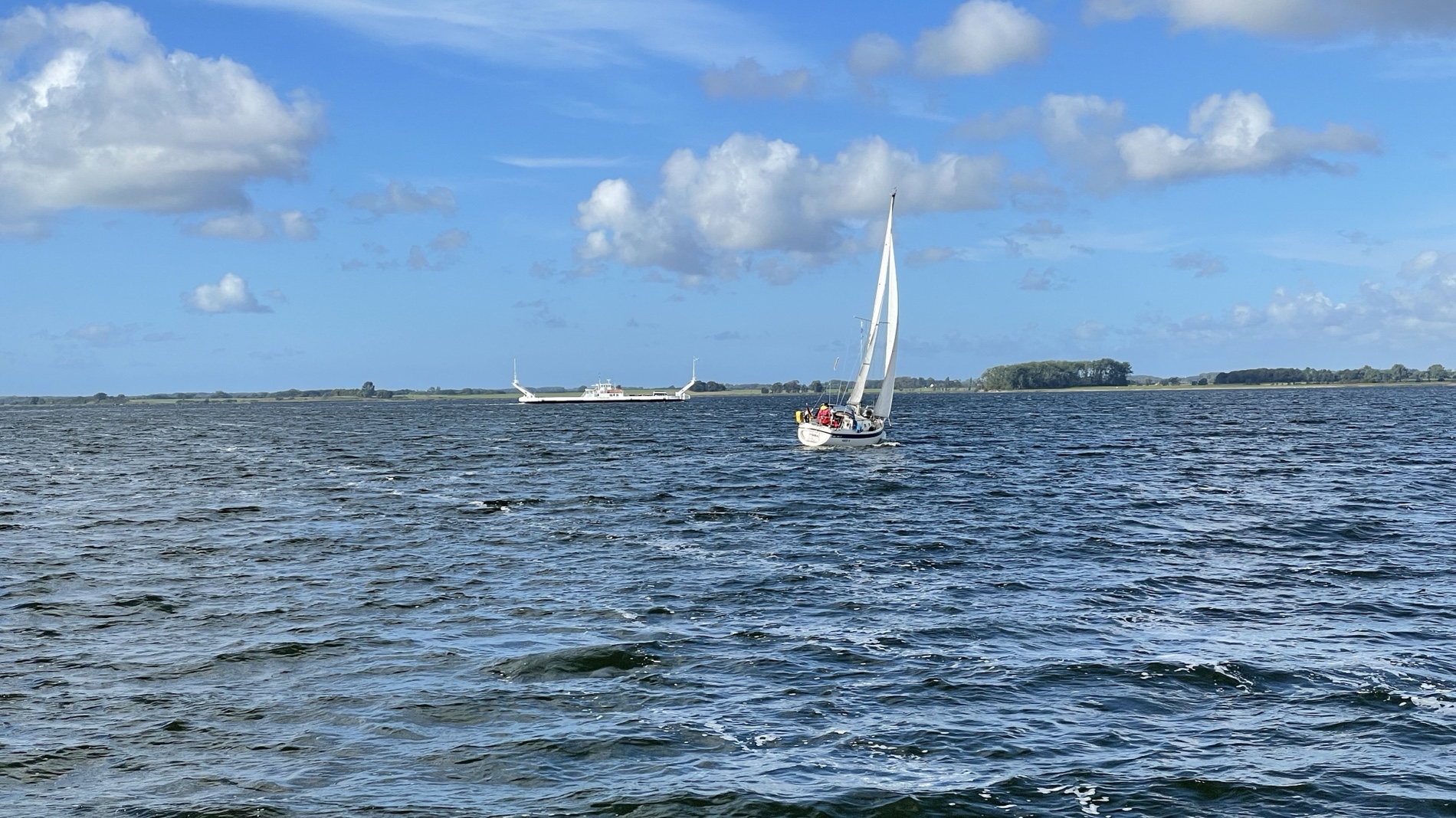 Heute nur ein kurzes Update mit ein paar Eindrücken. Heute war Kreuzen angesagt. Gegen den Wind segeln geht ja nicht, aber eben ein bisschen doch….Kreuzen nennt man das und kann man an dem Zickzack-Kurs gut sehen. Wir sind im Naturhafen Gustow gelandet, kurz vor Stralsund. Hier ist einfach mal nichts, außer Hafen. Die kleine Bar schließt bereits 1800, eben Saisonende. Andere bauen ihr Boot auseinander für das Winterlager und wir schippern hier noch rum.