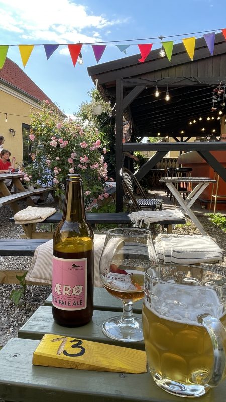 Rudkøbing ist wirklich hübsch. Bei bestem Wetter haben wir den Gaardhaven gefunden. Für dänische Verhältnisse steppte da da Bär: Weinbar, Restaurant (Tapas) und Garten, ein Gartenhafen, eine gemütliche Gastronomie, die man hier eher selten findet.