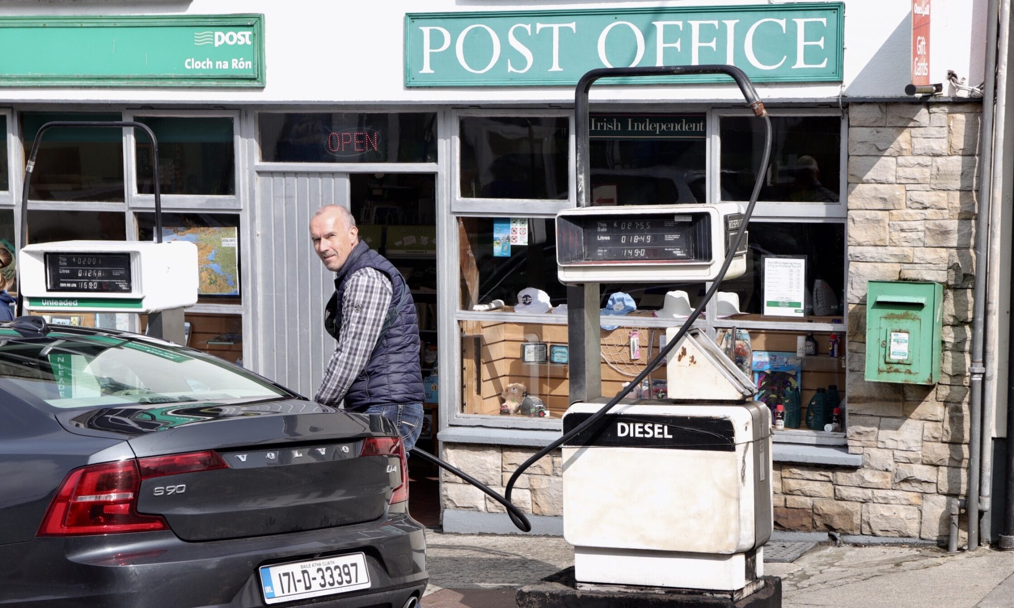 Am ersten Tag wunderten wir uns noch, was die Tanksäule in der Einkaufsstraße neben dem Blumenladen machte. Ein Überbleibsel aus alten Zeiten? Weit gefehlt. In Roundstone, einem kleinen Atlantikort, mussten wir mal nachfragen in einem kleinen Laden, indem es links MotorÖl, rechts Postkarten und hinten einen Bankschalter gab. Überschrift Post Office. Ja klar die Zapfsäulen funktionieren, was sonst. Also ran an den Tankvorgang. Läuft. Bezahlung? Gegenüber im Laden. Die Daten der Zapfsäule wurden nicht ausgelesen, also schickte mich die Omi hinter der Kasse wieder los. Ich sollte den Eurobetrag selber ablesen. Die Bezahlung ging dann doch glatt mit EC-Karte.