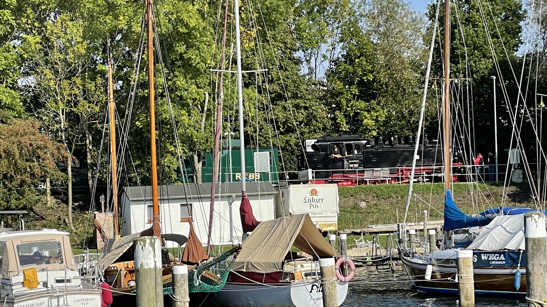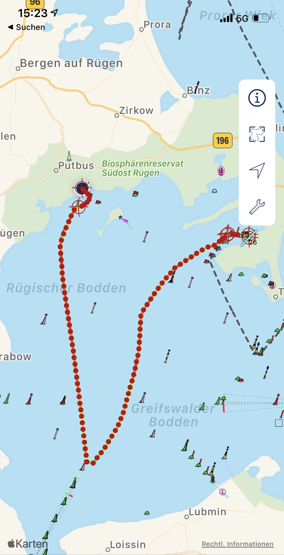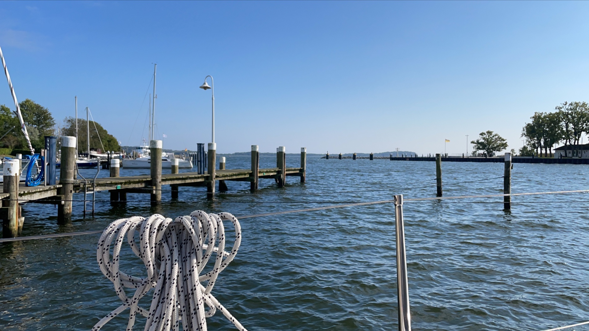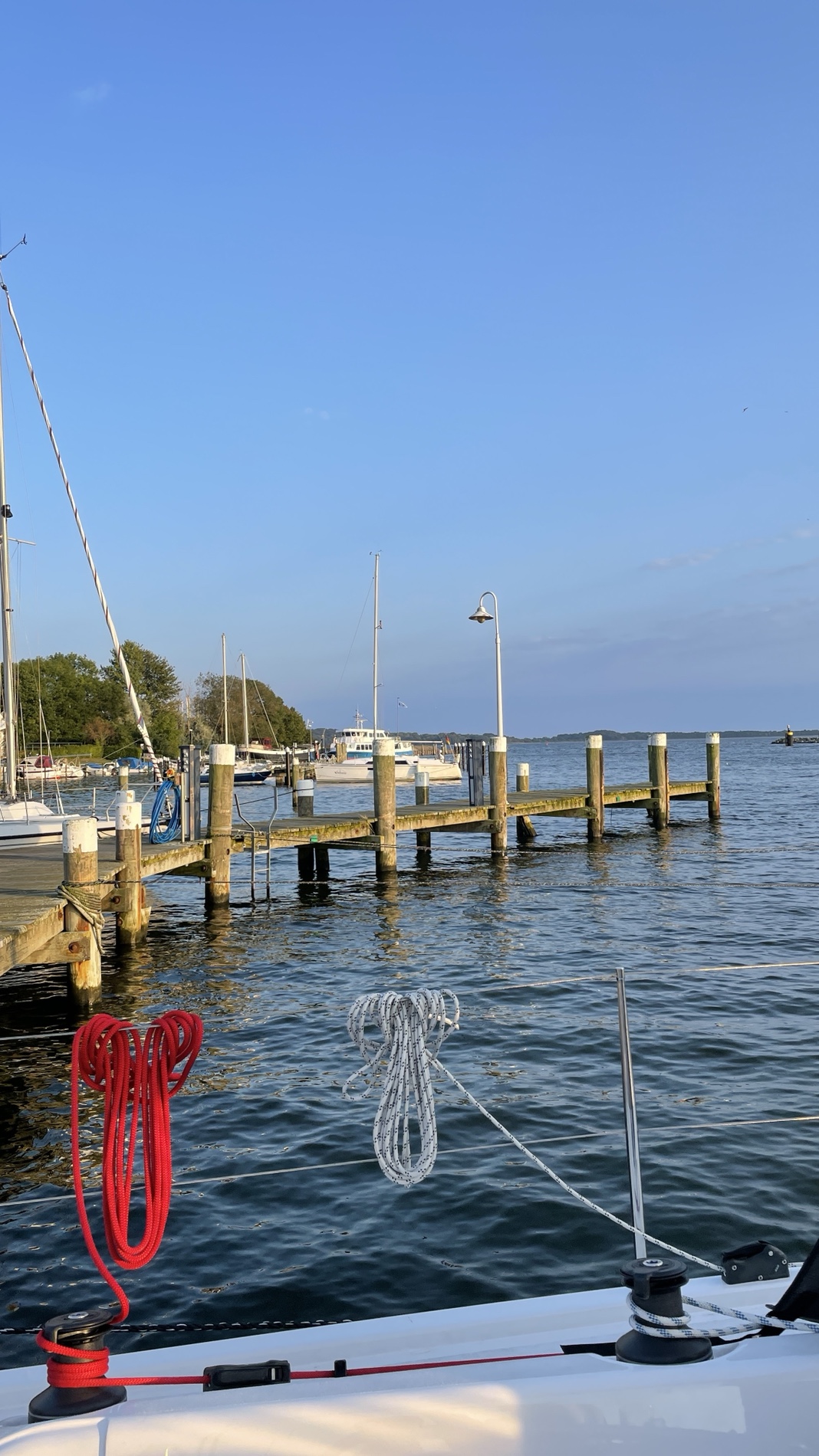 Heute eine “kurze” Tour, 22sm, von Gager erstmal Richtung Greifswald. Dort wollten wir kurz Halt machen. Aber der Wind schlief gen Land etwas ein, also gleich Wende an der Ansteuerungstonne vor Greifswald und mit halben Wind direkt rüber nach Lauterbach. Hier haben wir ein schönes Plätzchen im alten Handelshafen und das bei 18grd und Sonne. Kaffee und Kuchen am Hafen, frisches Fischbrötchen zum Abendbrot und der Tag ist geritzt. 😀