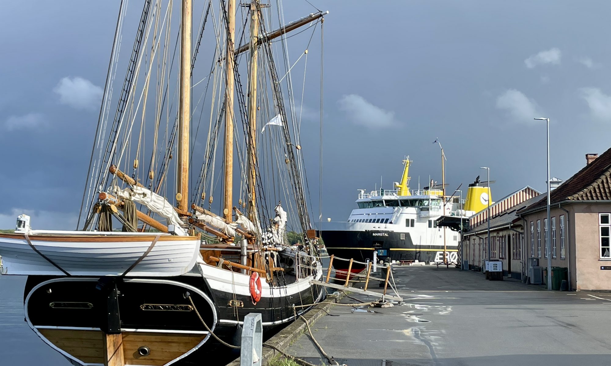 Morgen geht’s mit dem Segel nach Svendborg, aber heute haben wir schonmal vorgefühlt. (Zu) Viel Wind und der ein oder andere Schauer hat uns auf die Fähre verschlagen, die hier direkt vor unserem aktuellen „Wohnzimmer“ fast stündlich startet. Wetter war dann besser als gedacht. Svendborg gehört zu den „größeren“ Städten in der Region. Man spricht von der Hauptstadt des Inselmeeres, mit knapp 30.000 Einwohnern (hui dänisches Großstadtfeeling 🤣.