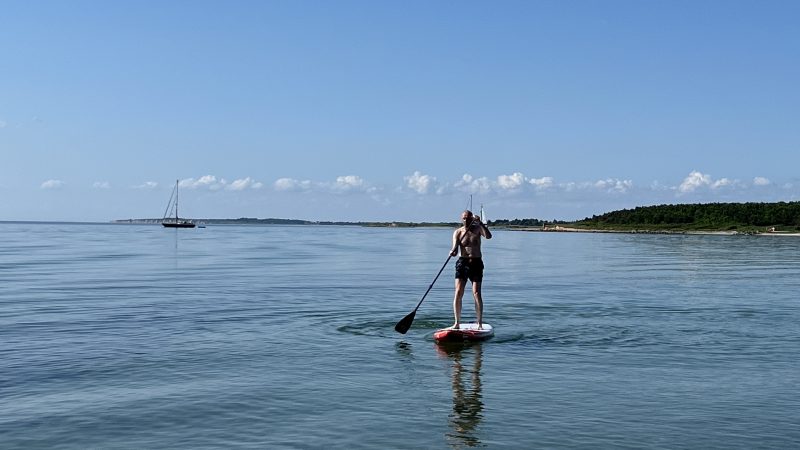 In Bagenkop war es sooooo warm, da war gleich der Sprung in die Ostsee Pflicht und kurzer  SUP-Ausflug war dann die Kür.