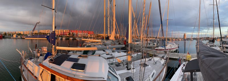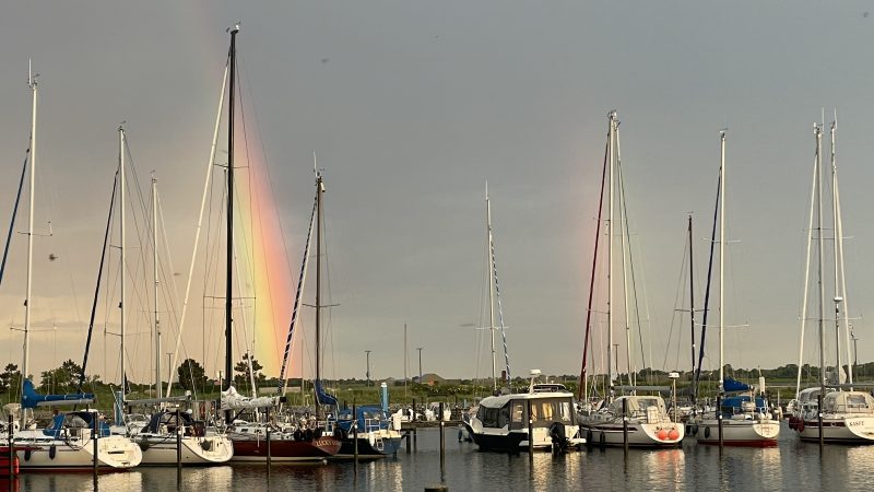 Wir wollten nun heute endlich rüber nach Dänemark. Das ist immer ein großer Sprung, ca. 35 nm also ca.60km und so eine Segelyacht ist kein Rennpferd. Doof 🤪 ist, wenn mitten auf dem Teich, also der Ostsee der Windmotor ausfällt. Wir mussten also auf halben Wege  den Diesel anwerfen. 0630 Ablegen, 1500 Anlegen in Bagenkop. Spannend, aufregend beim ersten Mal die Durchfahrt unter der Fehmarnsundbrücke mit 22m lichte Höhe. Mit 18m Mast hat man kurz den Eindruck nicht durch zupassen.