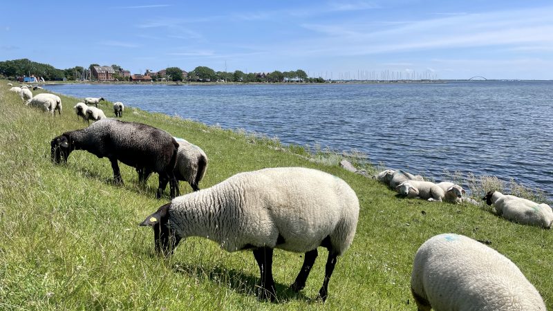 Was macht man, wenn man schon um 11:00 im Hafen ist? Fahrräder ausleihen und die Deiche abradeln, Schafe, Büffel treffen, 🐟-Brötchen essen.