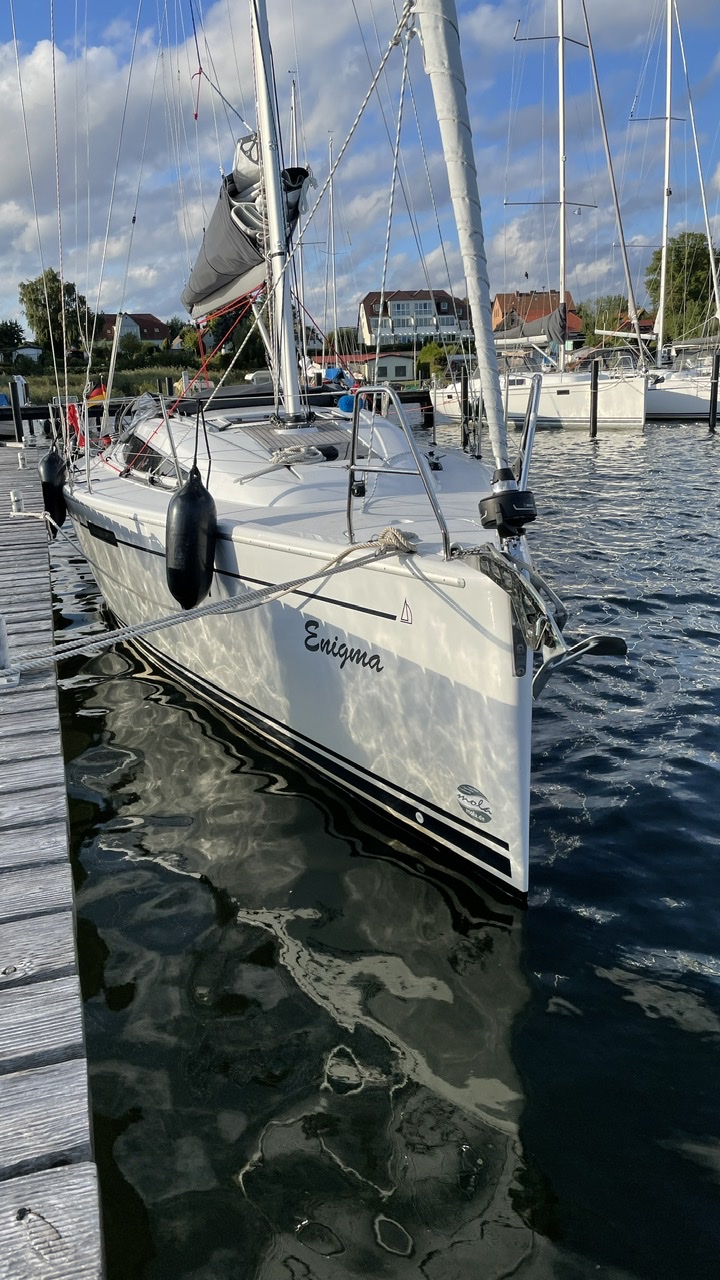 Unser Schiff ist eine Dehler 34 und kommt aus Greifswald, quasi ein Ossi 😜, aber erst seit 2009 durch Übernahme von Hanse Yachts AG..